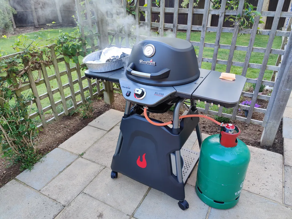 Круглая горелка All-Star нагревает решетку до максимальной температуры около 350°C, и, поскольку под ней находится один из инновационных гофрированных теплораспределительных листов TRU-Infrared от Char-Broil, вся решетка нагревается равномерно. Char-Broil рекомендует чистить инфракрасный лист после каждого использования, и лучший способ сделать это — оставить газ на высокой мощности на десять минут, чтобы карбонизировать жир и другие остатки. Затем просто смахните порошкообразные остатки или используйте прилагаемый инструмент для чистки.