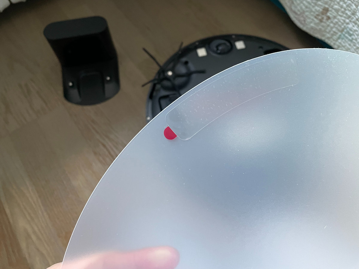 Основные датчики, включая оптический датчик OpticEye для ориентации в пространстве, и датчик перепада высоты для предотвращения падений со ступенек, находятся на днище. Также там расположена большая и крепкая боковая щетка для сметания мусора и колеса с протектором, которые успешно преодолевают такие препятствия, как пороги и бахрома ковров.