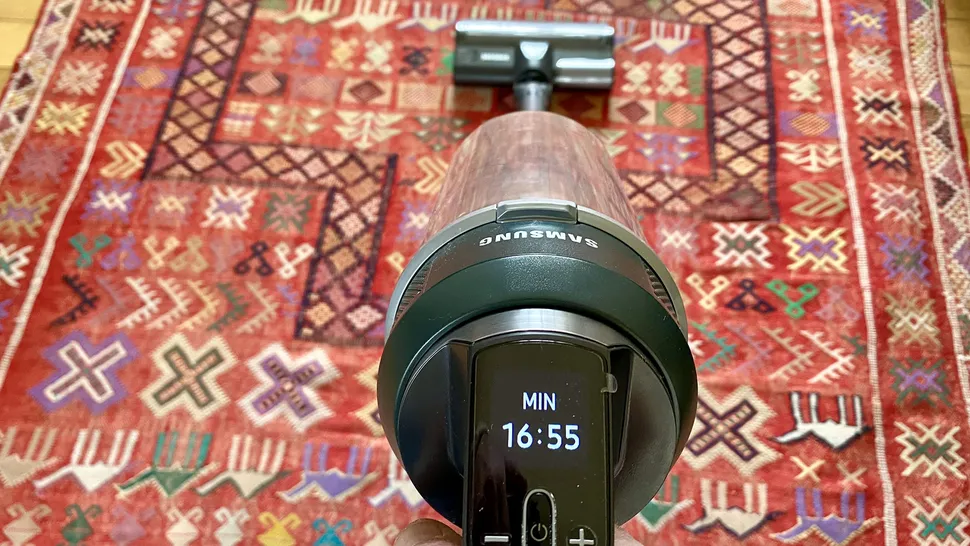 Но в режиме Jet, самом мощном, он работал всего семь минут при интенсивной уборке. Честно говоря, не представляю ситуаций, когда бы мне понадобился этот режим, кроме как для удаления пепла от сигареты с автомобильного сиденья. Обычно максимальная мощность всасывания быстро разряжает аккумулятор — Samsung не исключение.