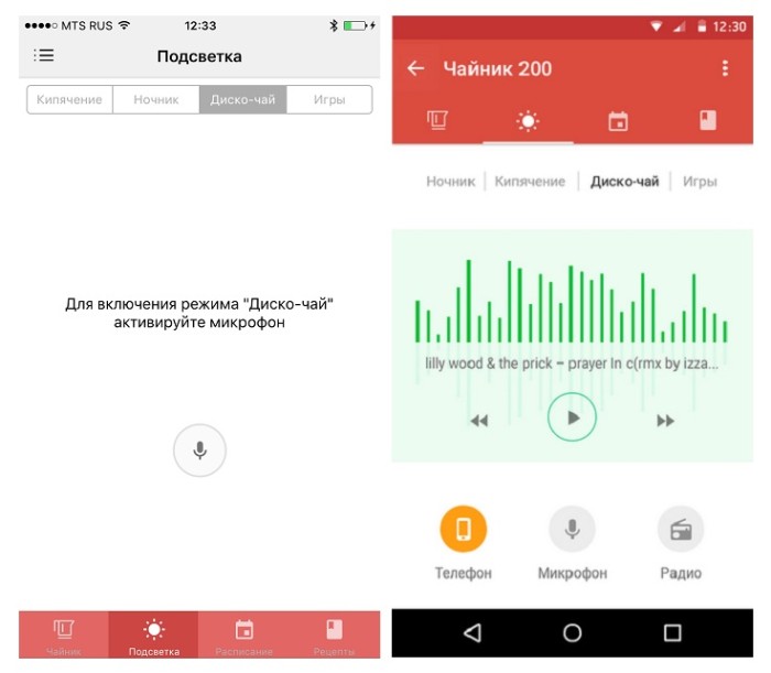 Настройка подсветки также проста: В приложении доступны различные режимы работы чайника.